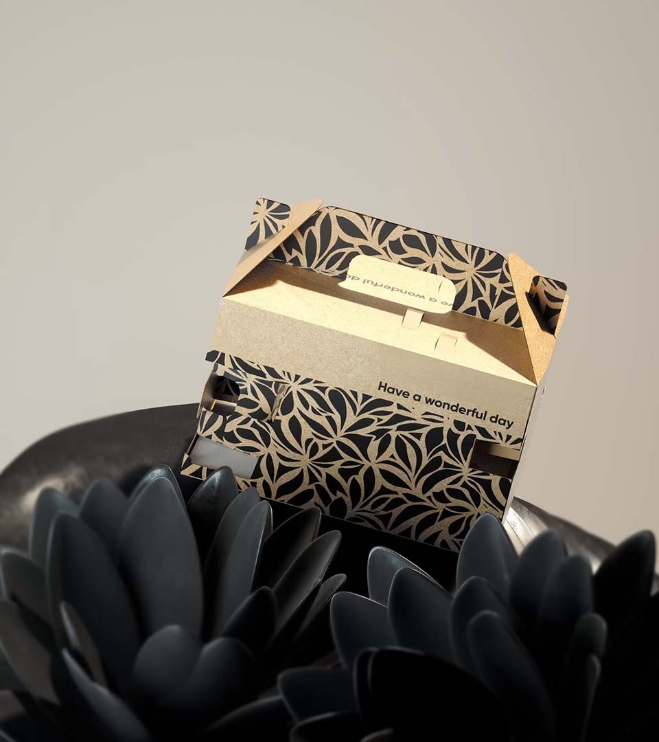 The well thought-out design with safe, thermally isolated compartments, its many modern art options and its eco-friendly nature, make it the most trendy, practical and relatable food packaging option out there.